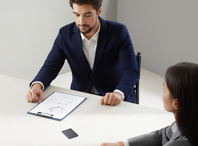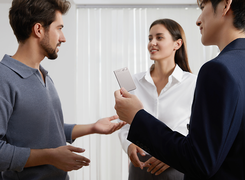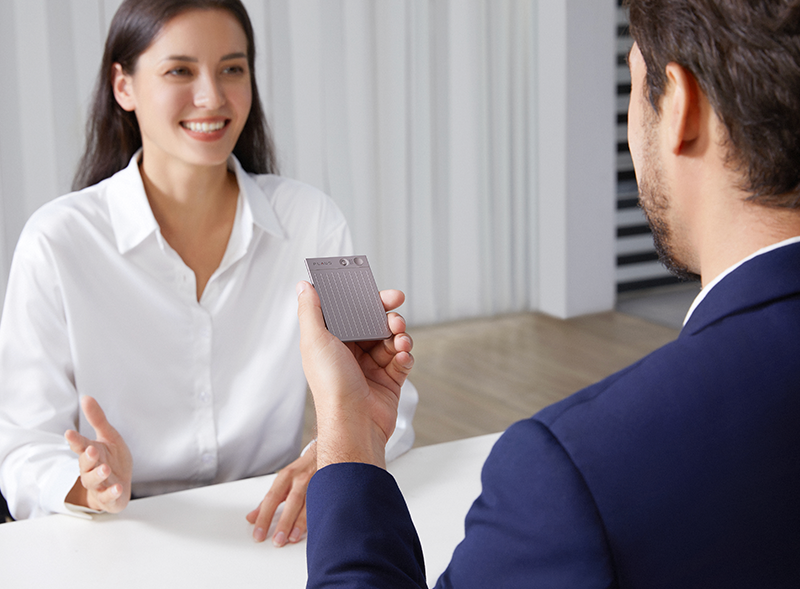 Restez complètement présent dans chaque conversation pendant que PLAUD NOTE fournit des notes d’entretien à la mise en forme professionnelle, ainsi que des points clés.