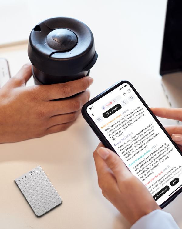 Ne luttez plus jamais pour vous rappeler un détail crucial. PLAUD NOTE enregistre et transcrit les appels instantanément, vous laissant libre de vous engager pleinement dans la conversation.