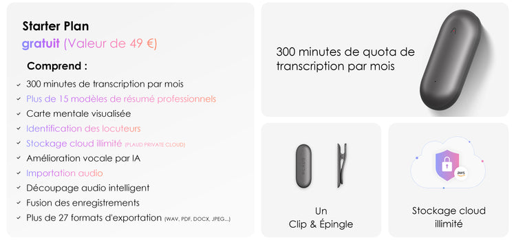 Achetez PLAUD NotePin, obtenez GRATUITEMENT le Starter Plan et une broche + pince magnétiques