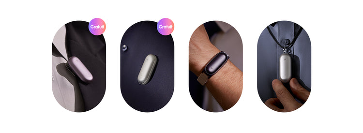 * Pour les utilisateurs portant un stimulateur cardiaque : veuillez éviter de porter le NotePin sur votre zone thoracique (y compris avec un cordon, une broche magnétique ou un clip) en raison de son magnétisme.